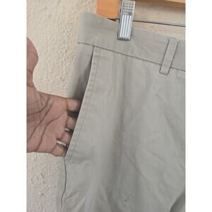 The Banana Republic Aiden Chinos in Men's Straight Fit, size 34x30 in beige, are a versatile and stylish addition to any man's wardrobe. These chinos feature a mid-rise waist with a flat front design, straight leg fit, and slash pockets. Made from cotton, these pants are machine washable and suitable for all seasons. The solid color and preppy theme make them perfect for casual occasions, while the button accents add a touch of sophistication. Ideal for a polished yet laid-back look, these chinos are a timeless piece that can be dressed up or down with ease.