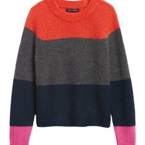 Banana Republic Aire Color-Blocked Wool Blend Long Sleeve Crew Neck Sweater M