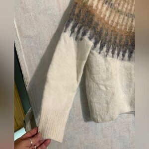 Banana Republic Alpaca Blend Fair isle Ivory and Brown Patterned Sweater, Sz Lg