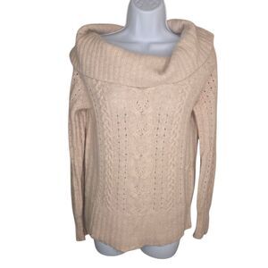 Excellent like new condition.  No flaws to note. Women's Banana Republic Angora & Lambs Wool  Cable Knit Cowl Neck Sweater Small.