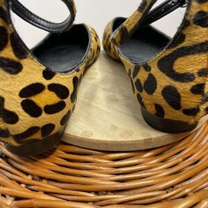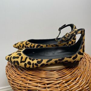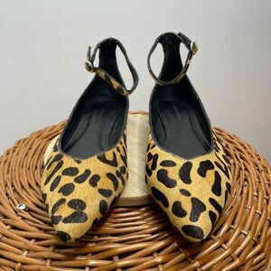 Banana Republic Ankle Strap Flat Haircalf Leather Leopard Print Size 7 Real Fur