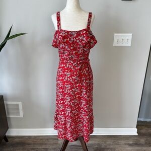 Banana Republic Apron & Ruffle Neckline Floral MIDI Dress with Belt