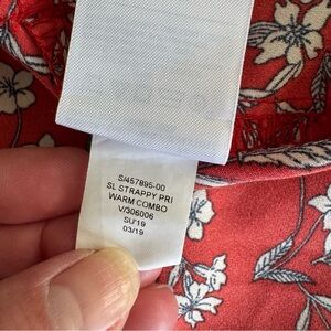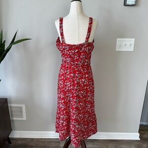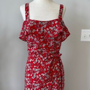 Elegant red dress with a charming floral pattern. Perfect for any occasion. Lined.