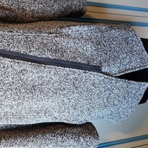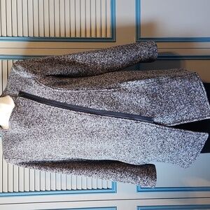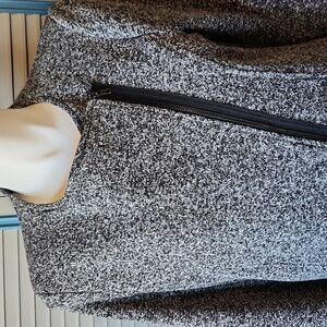 This Banana Republic asymmetrical zip sweater jacket blends the comfort of a sweater with the structure of outerwear. Featuring a modern asymmetrical front zipper and a sleek marled gray finish, this piece is perfect for layering during the cooler months. Made from 100% polyester, it offers warmth without the bulk.