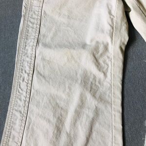 The color of pants is pretty even, although some photos are showing the color of left leg is lighter than right leg, but photo 9 is showing some inconspicuous discoloration, and photo 8 is showing some signs of wear, please view photos for details and use measurements for the best fit.