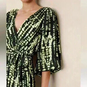 V-neck overlap. Balloon long sleeves with elasticated cuffs.