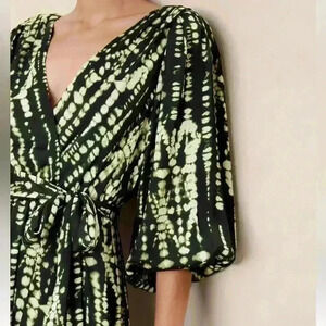 V-neck overlap. Balloon long sleeves with elasticated cuffs.