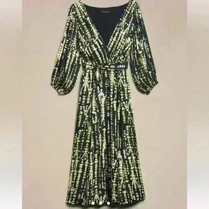 V-neck overlap. Balloon long sleeves with elasticated cuffs.