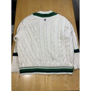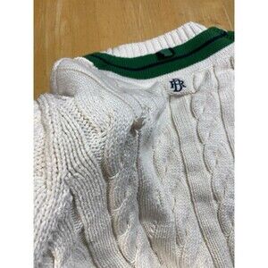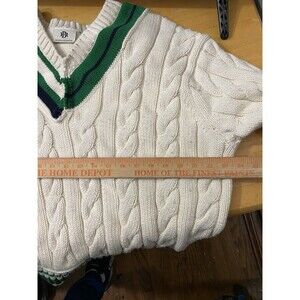 The Banana Republic BR Athletics Cricket Sweater is a luxurious and soft pullover designed for athletic fit. Made of 95% cotton and 5% nylon knit fabric, this sweater comes in a stylish cream and green color combination. With a V-neckline, this sweater is perfect for both men and women, offering a comfortable and elegant look in size M. Ideal for everyday wear or for adding a touch of sophistication to any outfit, this sweater from Banana Republic is a versatile and high-quality addition to any wardrobe.