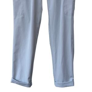 Banana Republic BR Standard Flyweight Cargo Jogger in size XS. Features lightweight silky fabric with UPF 50 sun protection, temperature regulating technology, and comfortable stretch. Pull-on elastic waistband with elastic cuffs. Multiple pockets including two side pockets, two cargo flap pockets, and two back pockets. Wrinkle resistant and packable, perfect for travel or everyday casual wear.