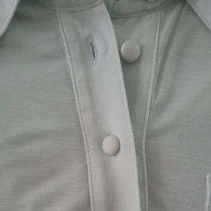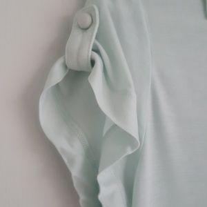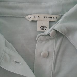 Banana Republic baby blue short-sleeved top. Sleeves can be worn buttoned or loose (see photos 1-3). Shirt is made up tencel fabric and is softer than traditional cotton.