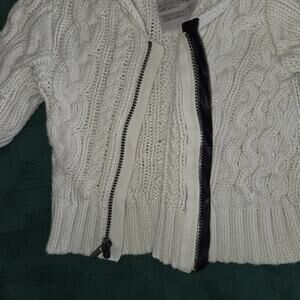 From the Banana Republic Mini line this is a baby's cableknit sweater in a cream/ivory color. So adorable with it's diagonal zipper on front with a faux leather trim.