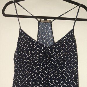 Banana Republic Back Cami Tank Top Large L Navy Blue Pattern