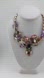 Sold-out Banana Republic necklace features a multi-gemstone design with a variety of shapes and colors, including clear, purple, pink, brown, and grey stones. Has an extender for adjustable length. The overall construction is intricate, with stones set in individual bezels and connected by metalwork. Heavily discounted price because it is missing a 3-4 baguette stones (see photos). Stunning piece from BR!
