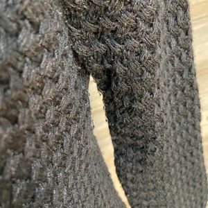 This is a heavy Banana Republic sweater with a silky feel. The basketweave pattern gives this sweater a unique look and feel.