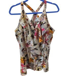 Banana Republic Bird Floral Print Button Front Ruffle Halter size 14