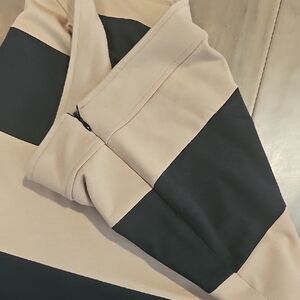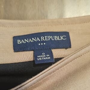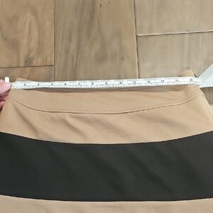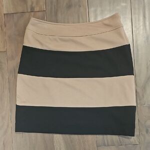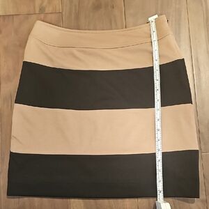 Elegant and versatile, this striped tan and black skirt is perfect for any occasion. Pair it with your favorite top for a chic look. size small banana Republic skirt. has zipper on the left side. 15 inches across the waist. 19 inches long. no holes or stains!