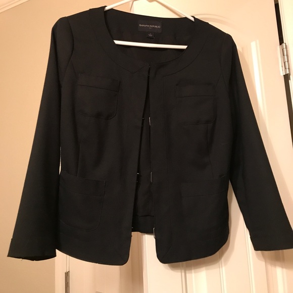 Banana Republic Crop Blazer/Jacket in Size 2. Length from back is 19.5 inches. Metal clasps on inside of jacket as closures.