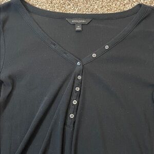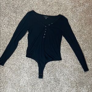 Chic black bodysuit with long sleeves and button accents. Ideal for stylish layering.