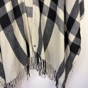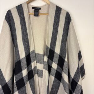 Banana Republic Black Cream Plaid Cashmere Blend Poncho