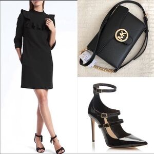 3/4 sleeve, ruffle detail, very elegant, slim fit,mini, pockets