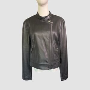 Banana Republic Black Faux Leather Moto Jacket L Asymmetrical Zip Biker Style