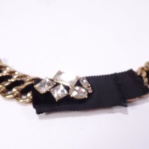 Banana Republic Black Grosgrain Ribbon Onyx Gem Stone Statement Crystal Necklace