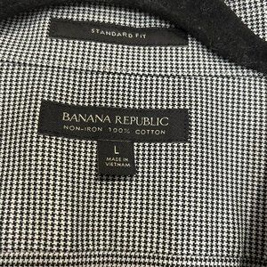 Banana Republic Black Houndstooth Button Up Non Iron Standard Fit Shirt