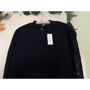 Banana Republic Black Lace Top Medium NWT Long Sleeve High Neck Blouse Elegant F