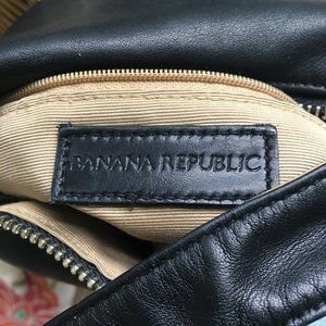 Super cute - Vintage Banana Republic Black Genuine Leather Mini Satchel Bag, silver metal strap loop. Perfect, brand new condition, never used. Buttery soft genuine leather with beige fabric interior, inside zipper. 8"W, 5"H, 3"D Mini size makes it perfect for phone, wallet and make-up from day to night.