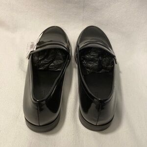 These Banana Republic loafers feature a sleek black leather design with a classic penny loafer style, perfect for a polished and timeless look. The high-shine finish and rounded toe box add to their formal appeal, making them an ideal choice for both professional and casual settings. Crafted with attention to detail, these slip-on shoes offer comfort and sophistication in every step.