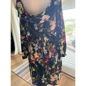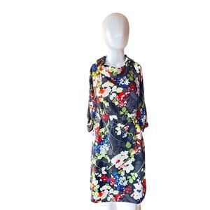 Banana Republic Black Multicolor Floral Print Dress Women’s Small Cowl Neck