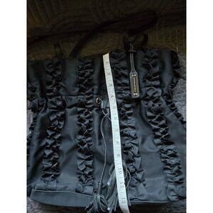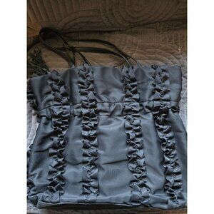 Banana Republic Black Nylon Ruffle Tote Cinch Bag
