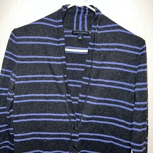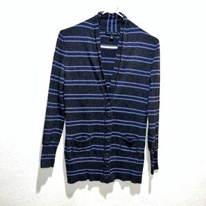 Banana Republic Black Purple Stripe Wool Blend Front Button Cardigan