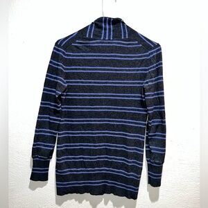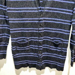 In good condition. Banana Republic Black Purple Stripe Wool Blend Front Button Cardigan Women Size small