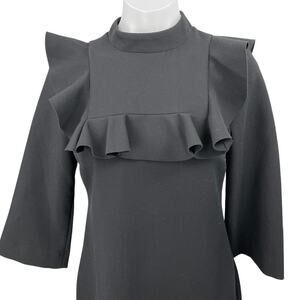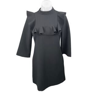 Banana Republic Black Ruffle Frill Mock Neck 3/4 Sleeve Mini Shift Dress Size 2