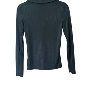 This sleek black satin ribbed long sleeved shirt from Banana Republic features a fitted design with a classic polo collar. Its style ensures a smooth silhouette, making it a versatile choice for both professional and casual settings. Excellent condition, no flaws. Pet and smoke free home.