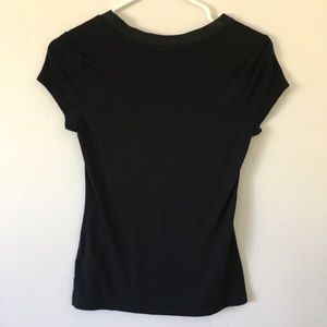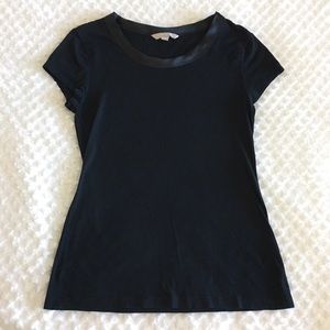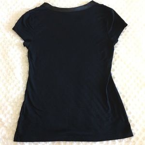 • Black top with satin trim neckline • EUC • excellent fit • comfortable with stretch • no trades, please