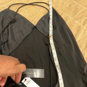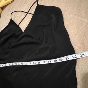 Elegant Black Banana Republic Slipdress. New With Tags. Dress is cut on the Bias so it will flow over your curves in a custom fit. The back is a low cut, approximately 16-17 inches deep from the shoulder to the top of the low cut. The bottom portion of the dress has an asymmetricaly inserted panel which will flow as you walk. The rear hemline is 4-5 inches longer than the front. The Straps are ADJUSTABLE! May help to customize the length, bust area and low back. *GREAT TO USE AS A SKIRT, with a Blouse or Sweater over the top.*