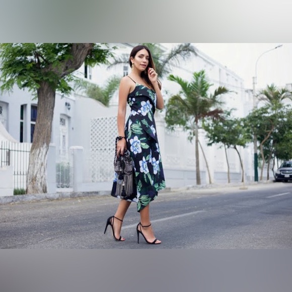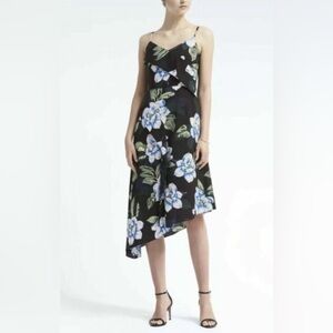 Banana Republic Black Strappy Blue Floral Asymmetrical Dress, Size 6 Petite