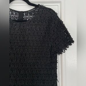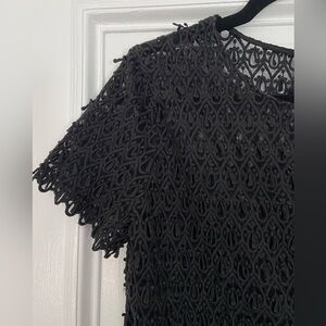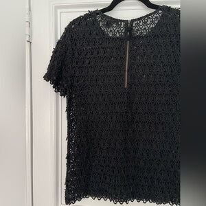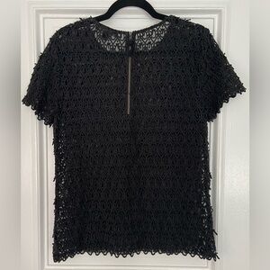 Banana Republic Black Teardrop Embroidered Lace Short Sleeve Top Blouse Back Zip