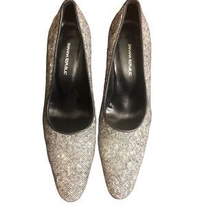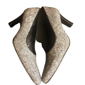 Banana Republic black tweed pumps with black leather lining and back. Slip on. Closed toe. 3” heels. Size 7.5 M EUC