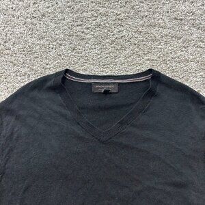Banana Republic Black V-Neck Sweater L 100% Merino Wool Lightweight Long Sleeve