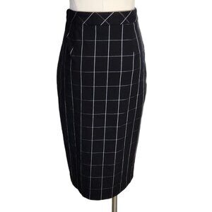Banana Republic Black White Grid Check Pencil Skirt Women's Petite Size 0