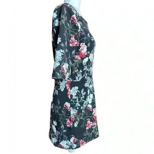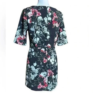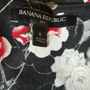 Banana Republic Black White Red Floral Midi Dress size 8