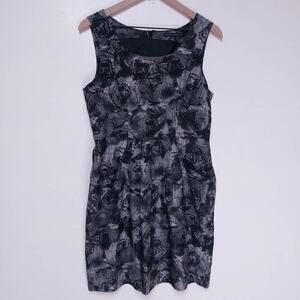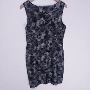 Banana Republic womens dress in black floral. Sheath style dress in all over gray floral on black. Sleeveless with pleated front. Pockets on front and back kick slit. Fully lined. Made of silk / wool blend, so it's lightweight and luxurious. S