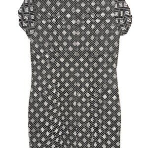 This Banana Republic sheath dress features a textured black and white geometric pattern, a short sleeve design, and a classic tailored silhouette perfect for work, events, and polished everyday style. Fully lined with a flattering structured fit. Women’s size 4. Approx. 36" length. Gently preowned and in excellent wearable condition.
