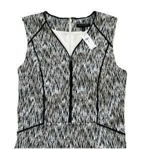 Banana Republic Factory Black White V-Neck Sleeveless Piped Trim Sheath Career Work Dress