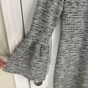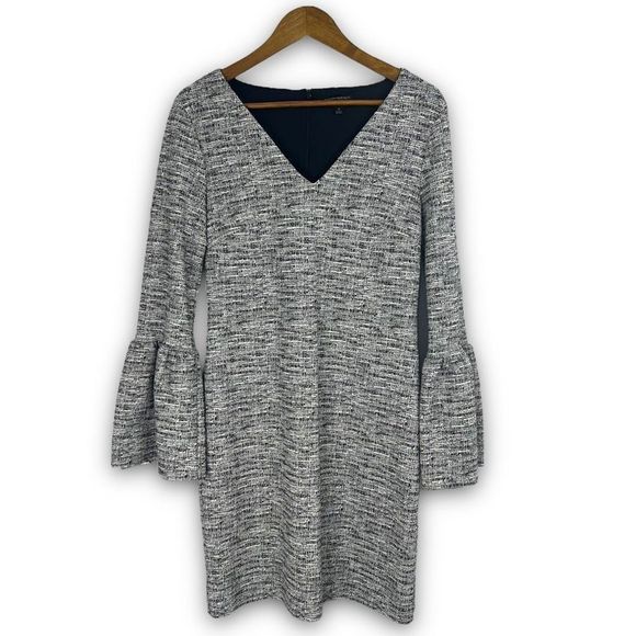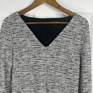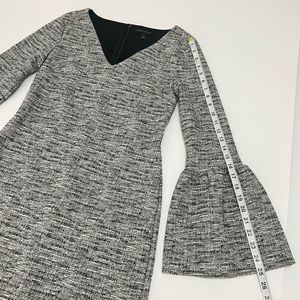 Banana Republic Black White Lined Bell Sleeve V Neck Tweed Midi Dress Small