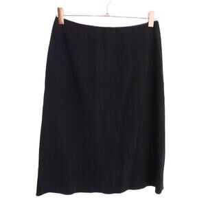 Black A-Line skirt. Excellent preowned condition. Soft satin trim at waist. Thin flexible wool blend skirt with lining.